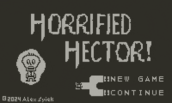 Horrified Hector! is the debut Playdate game from Alex Syiek, who is in constant awe of and is eternally grateful to the Playdate pulp dev community! Supportive comments, helpful feedback, and any donations are always appreciated as this game continues on its journey.